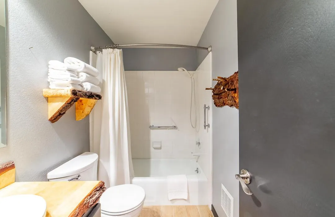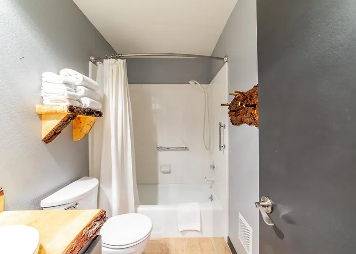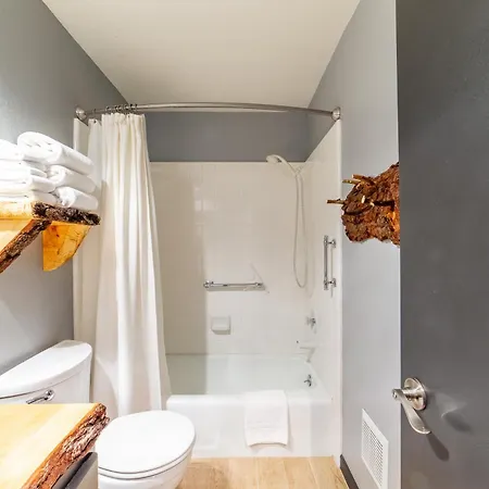 Bathroom facilities at Tranquil & Woodsy 2/2 Retreat - Jacuzzi, W/D, Bbq! Villa also include a separate toilet, a hot tub, and a shower. A hairdryer are included to enhance your comfort.